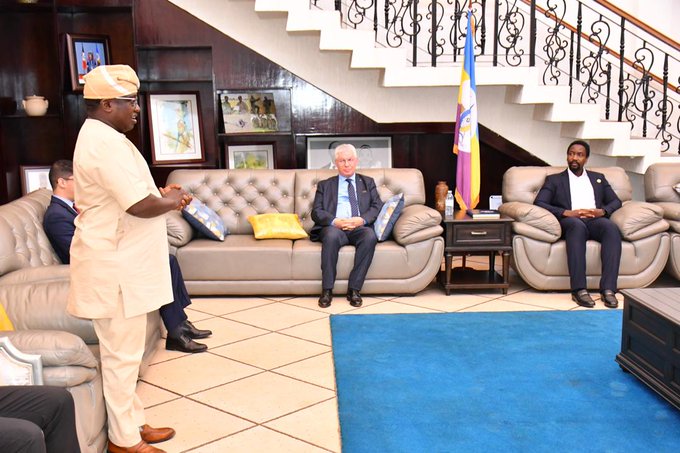 The Algerian Ambassador was accompanied by his deputy, Habib Chabbi, along with Kivuna and Michael Bulyenali. On arrival at the palace, the delegation was received by Busoga Kingdom Permanent Secretary Godfrey Ssajjabi Samanya and State Minister of Finance Ivan Kiirya.